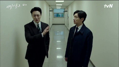 I'm almost conflicted about Prosecutor Kim Sa Hyun (Kim Young Jae); I'm not too sure to feel about him as the second in command to Woo Tae Ha; something about him seems unscrupulous. I wonder it's the reason why Woo Tae Ha picked him despite Shi Mok's objections. I almost borderline not like him, but I find Chief Bit and Tae Ha even less likable. I am not sure what the police or prosecution expected, but their first council meeting was a total disaster, and more so, the prosecution undoubtedly lost the first round. They came off defensive with only Shi Mok, asking the relevant questions. And even though the police made valid points, I was surprised they didn’t already have a firm plan on how they would validate the legality of warrants.